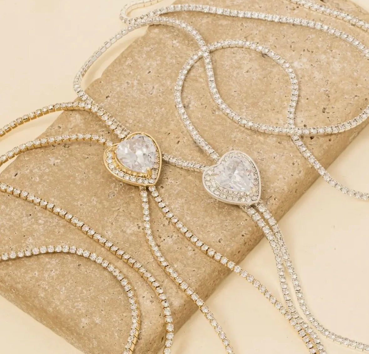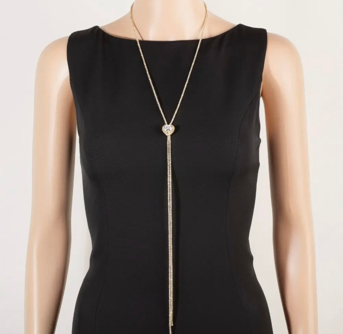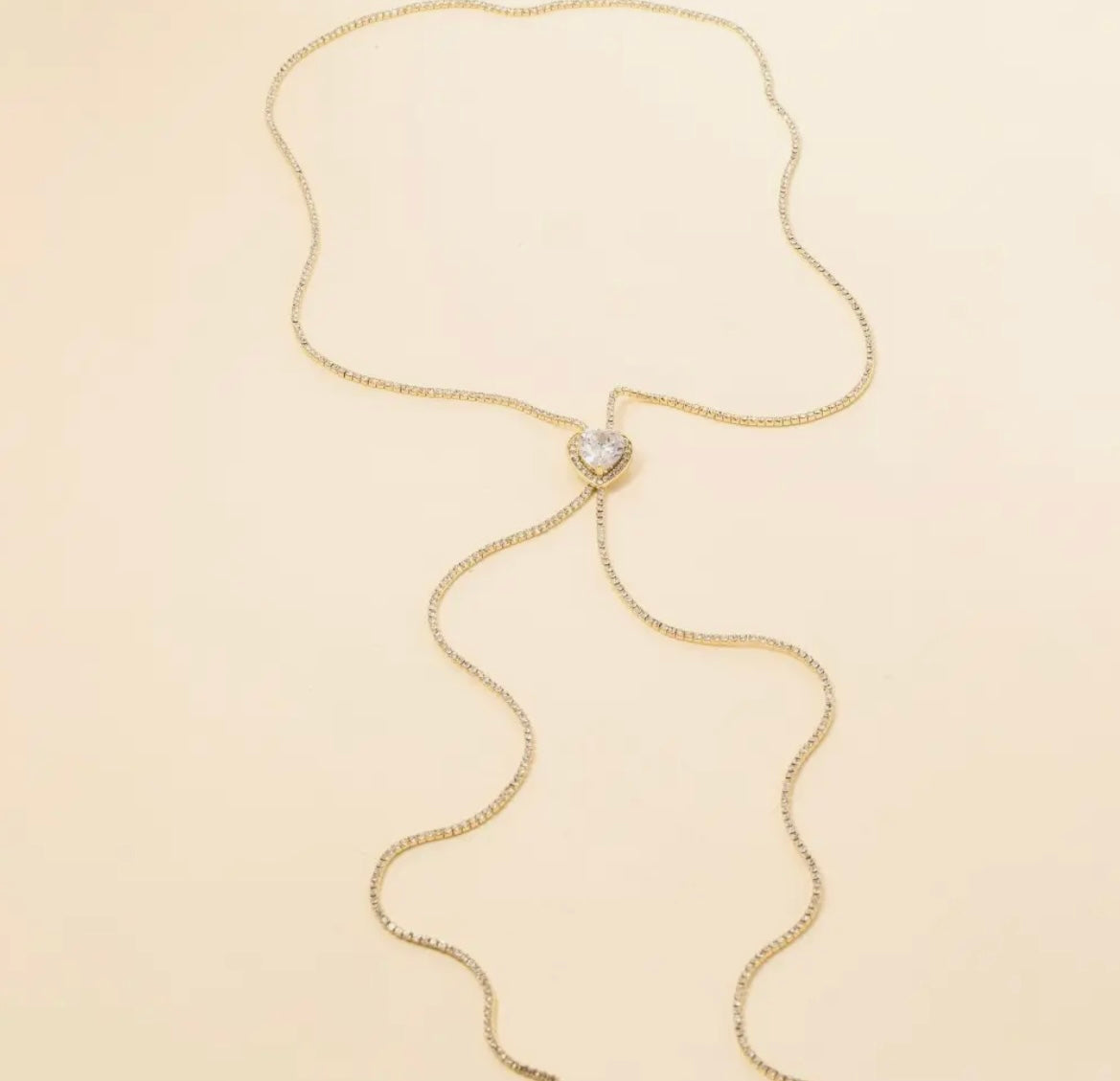 this is fabulous!! gold necklace with cz detail and heart slide, certainly adds a statement to whatever you choose to pair it with, super unique, I love it!! 47” long
