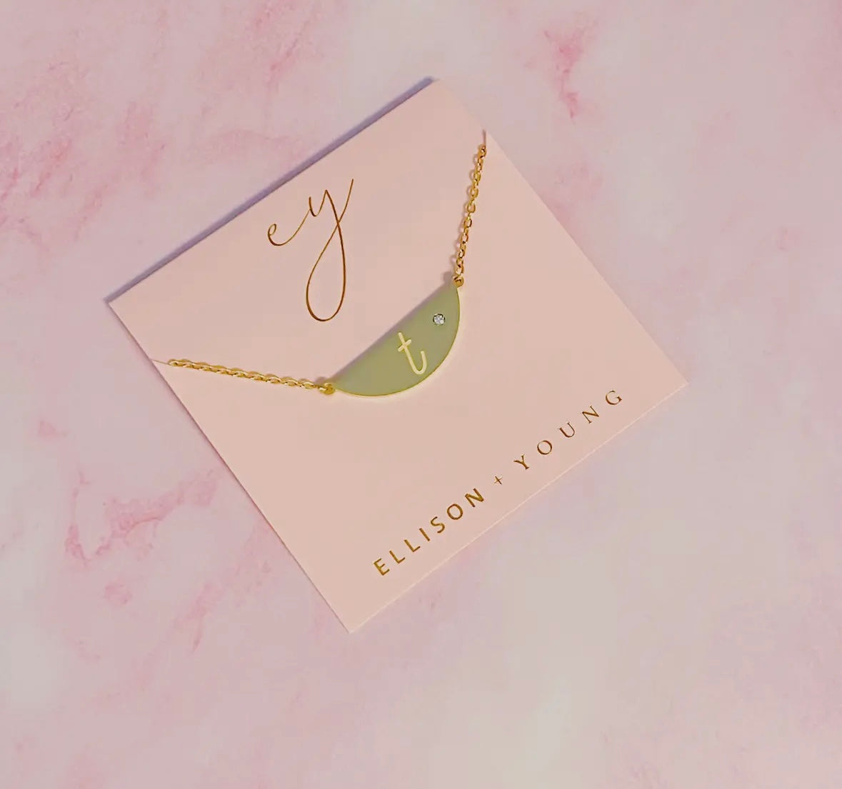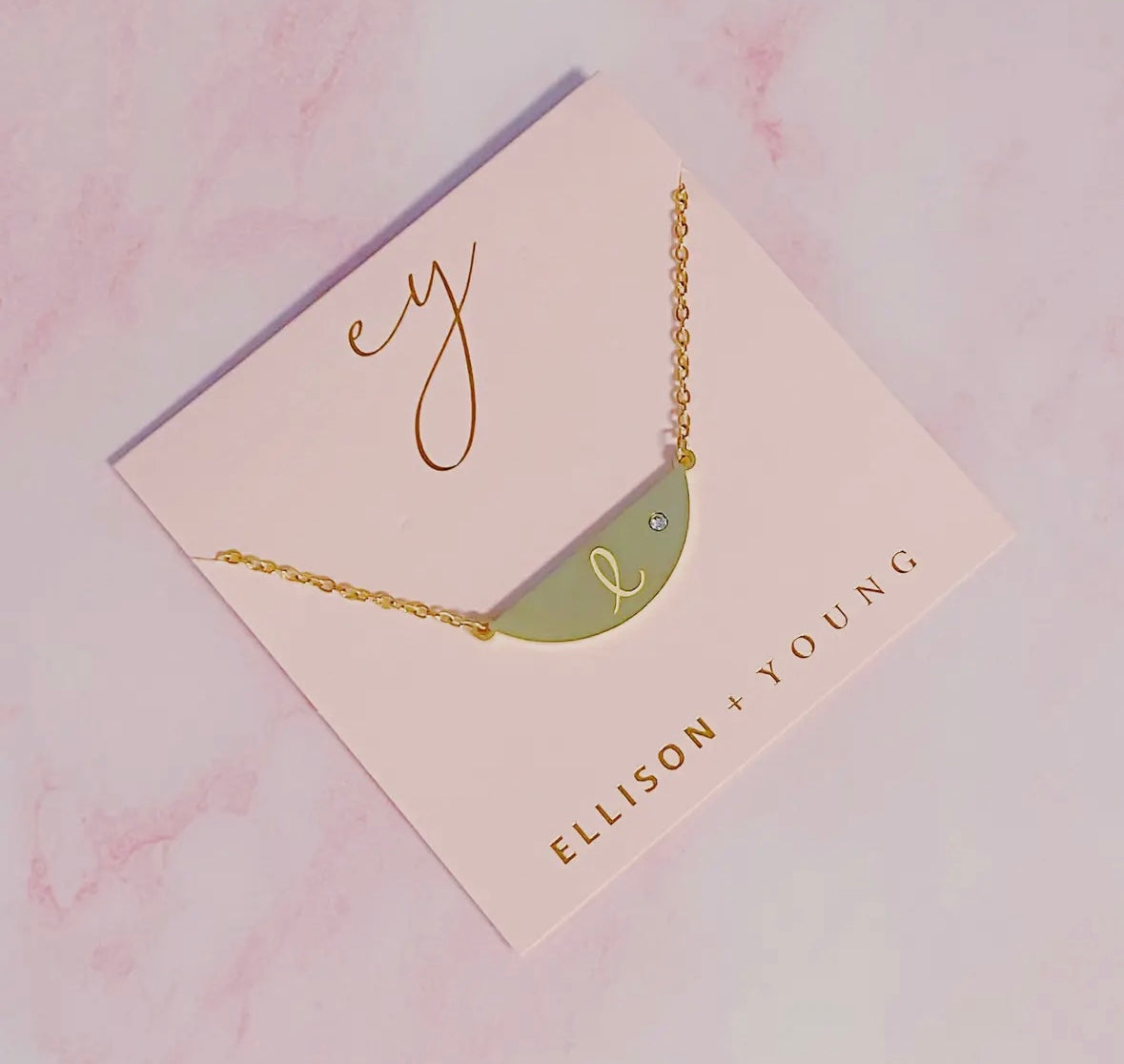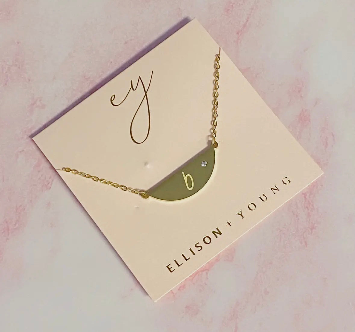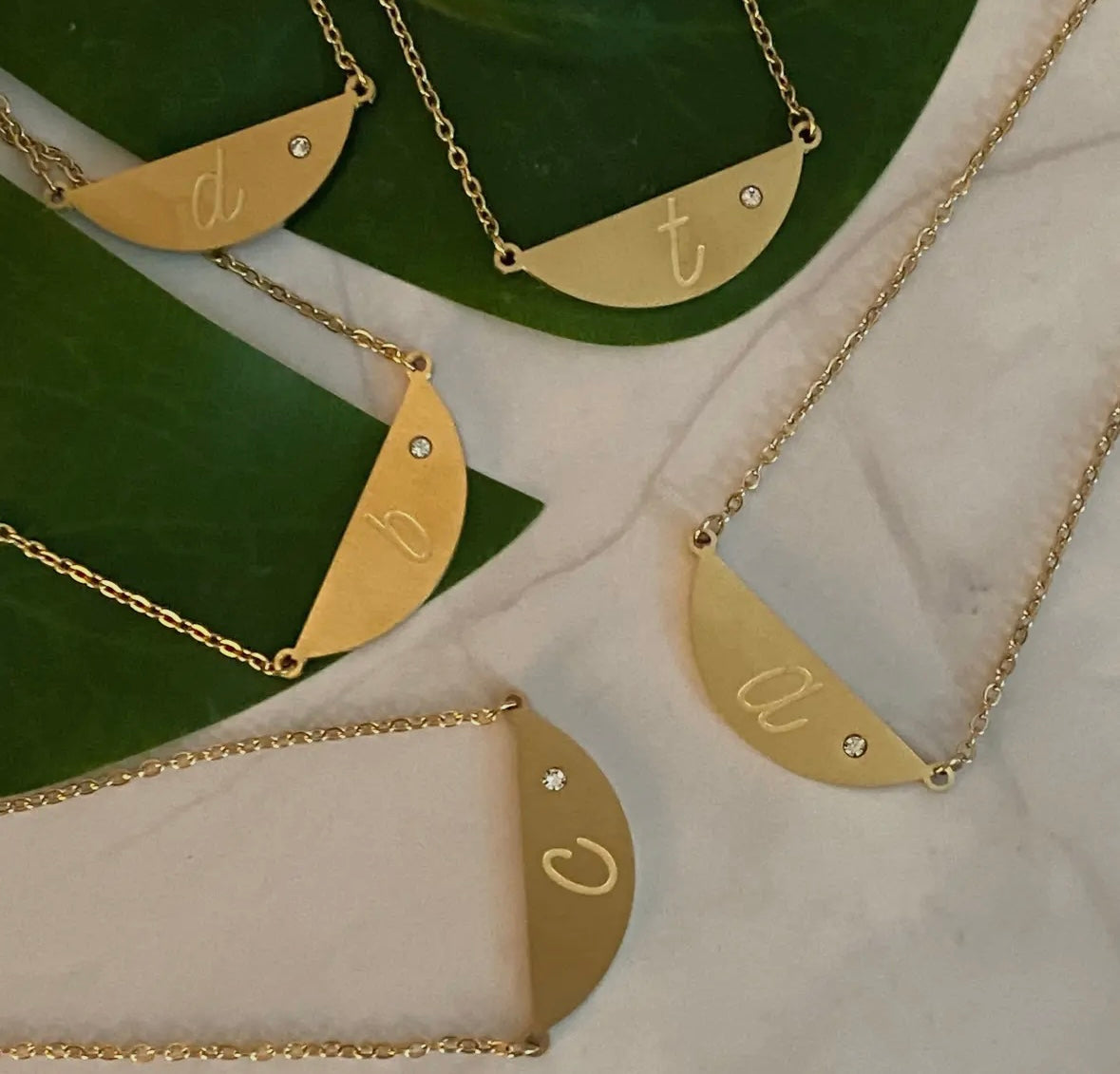 a fun new take on the classic initial, script lower case letter with cz detail on a half sphere.
