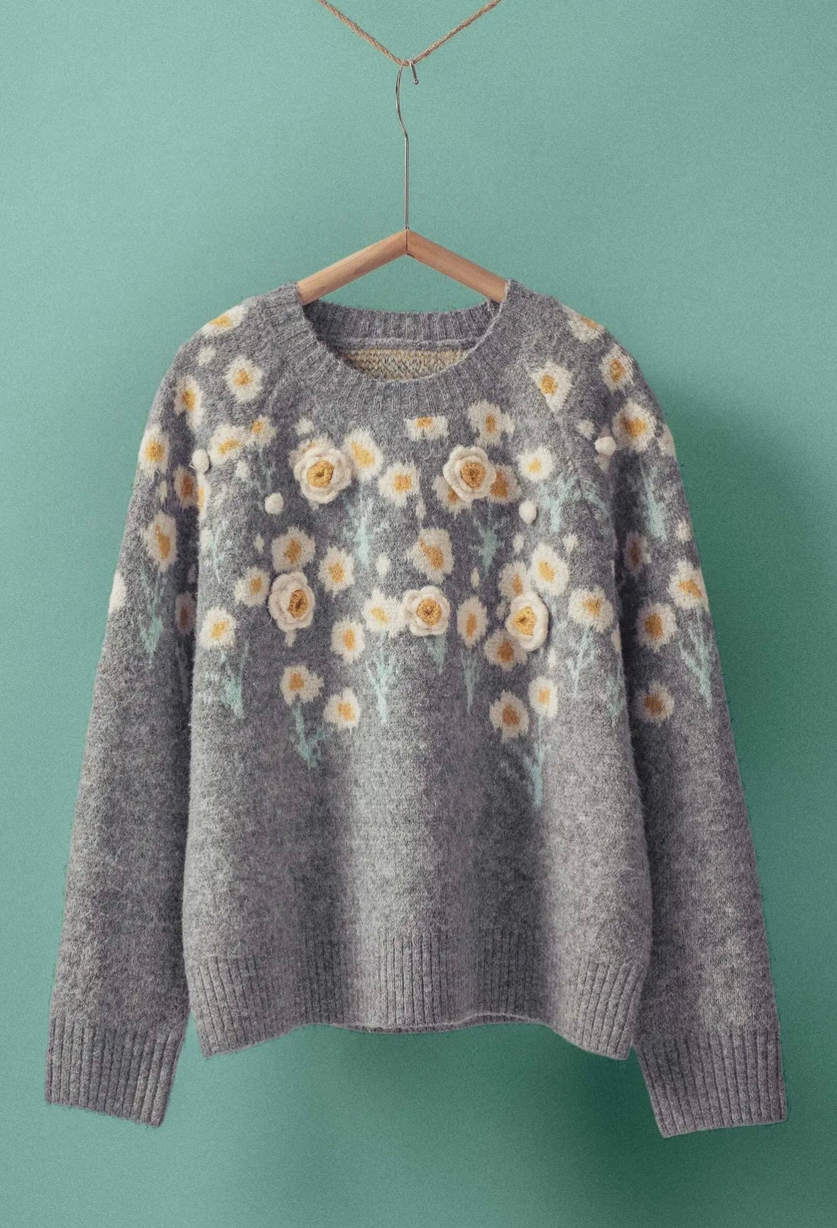 pretty grae sweater with daisy detail, 3d in some places, super sweet