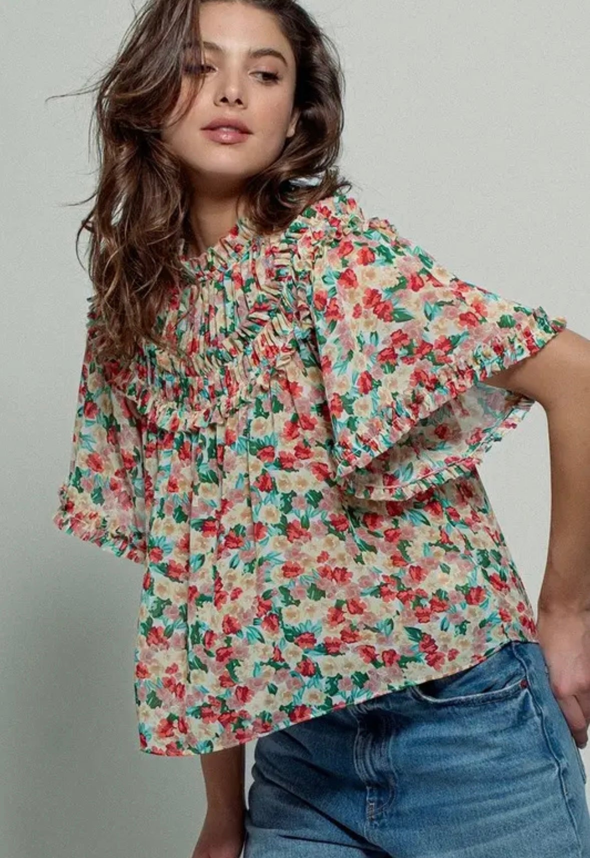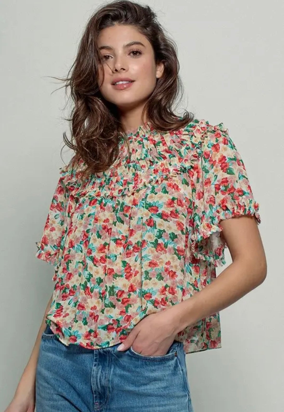 pretty flouncy flower top for spring and summer