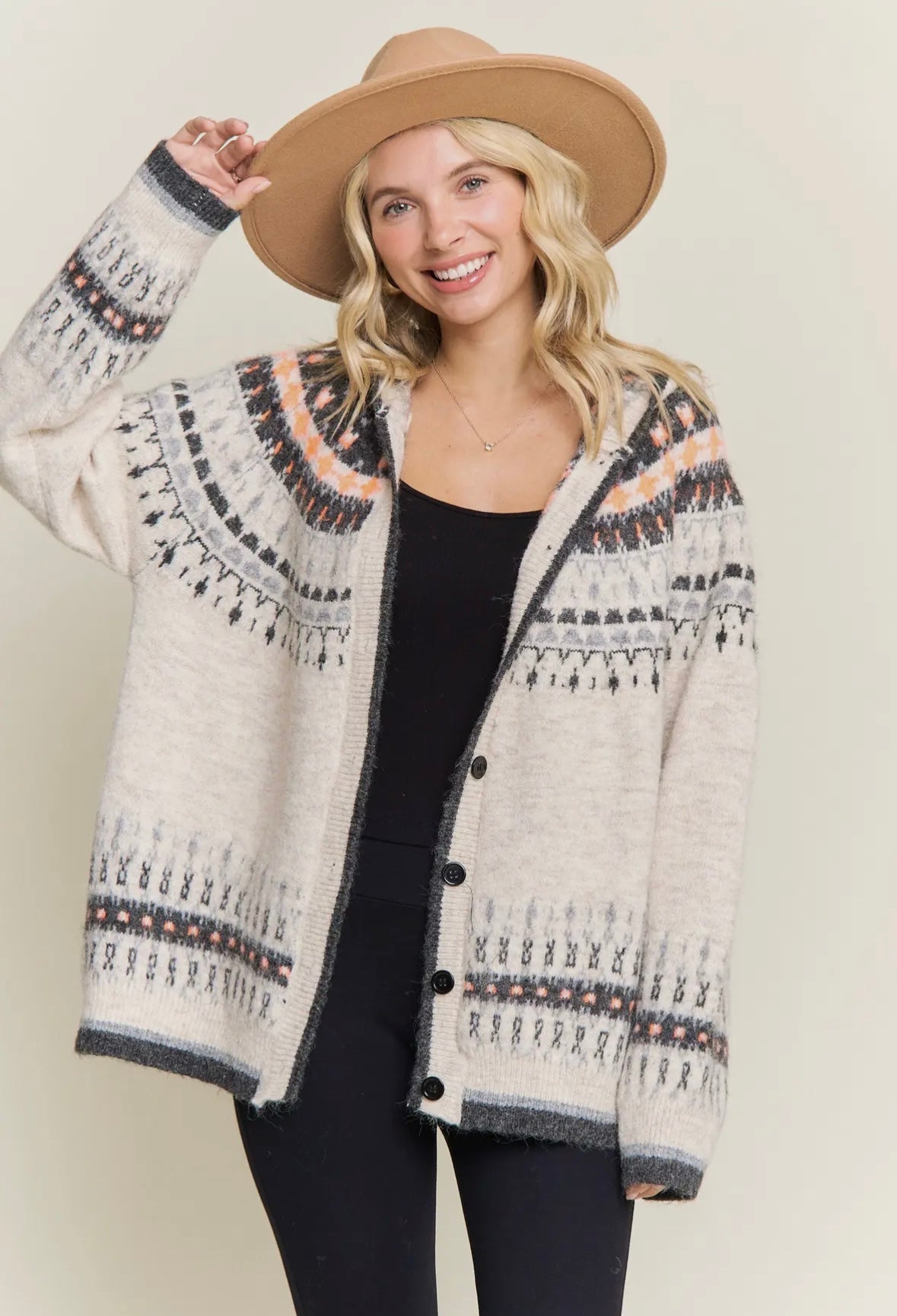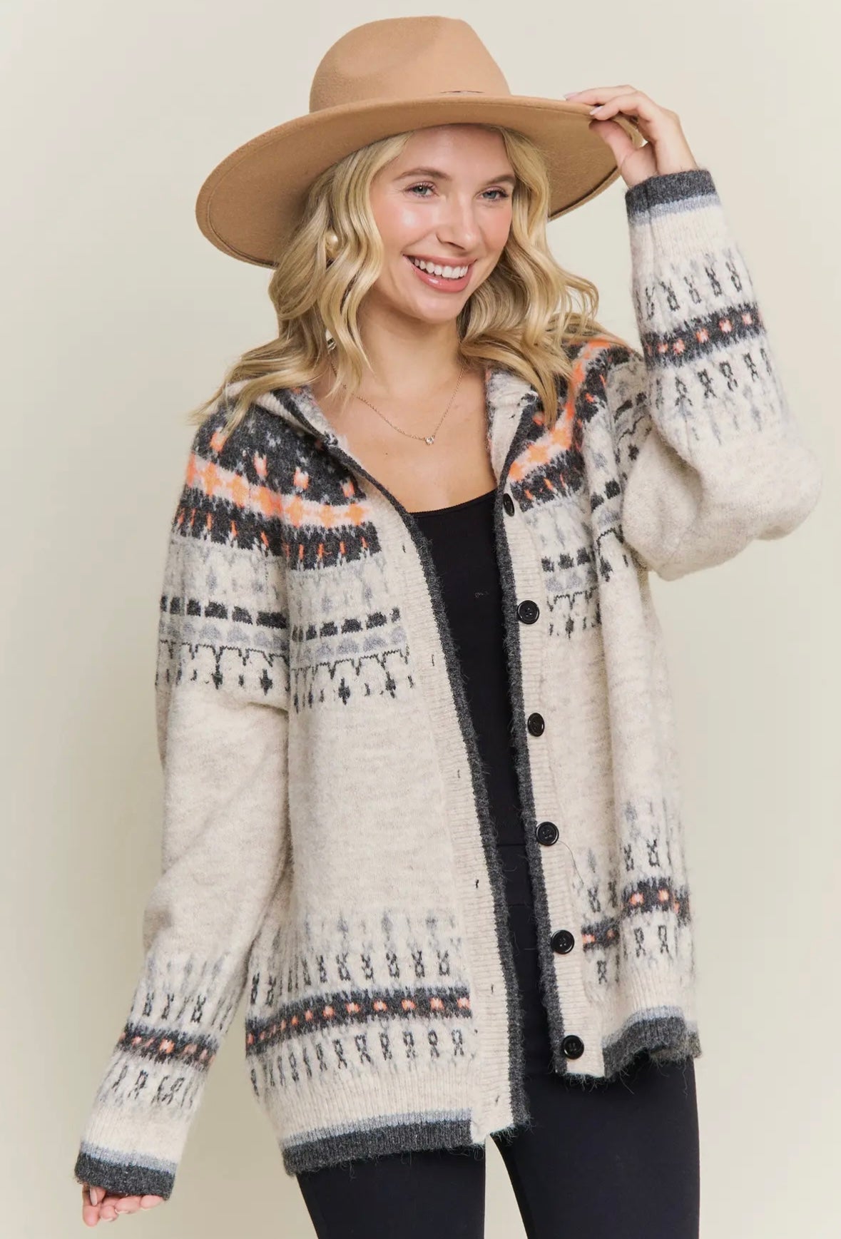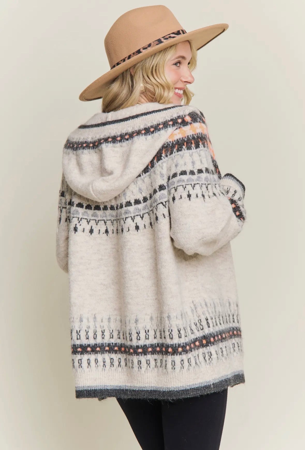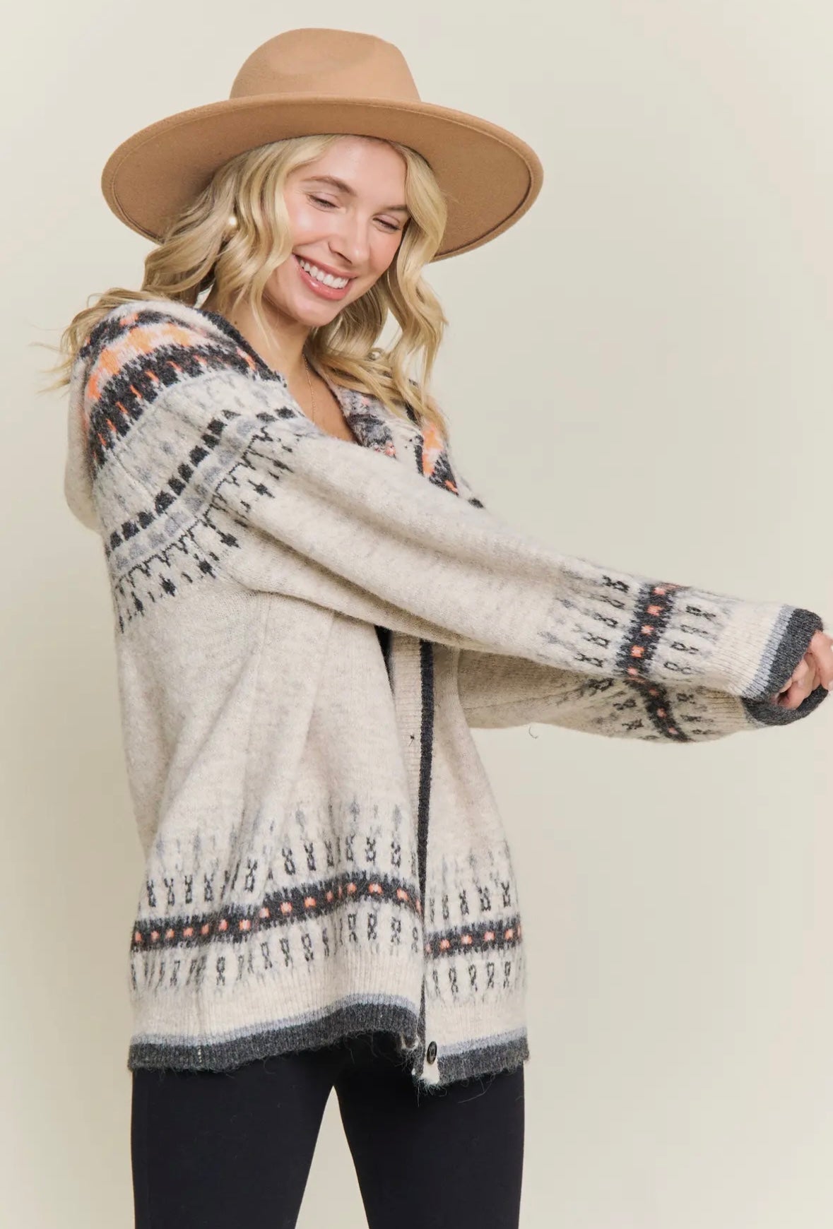 super soft sweater jacket with hood, soft grae with an unexpected pop of citrus, love