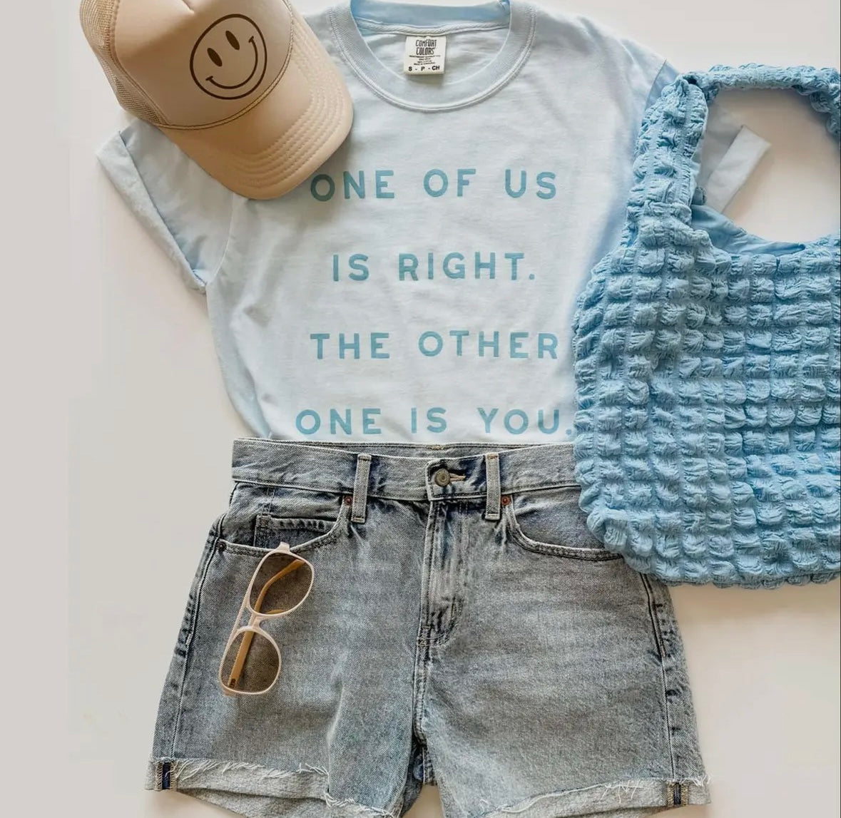 super pretty ice blue tee with deeper blue lettering, comfort colors