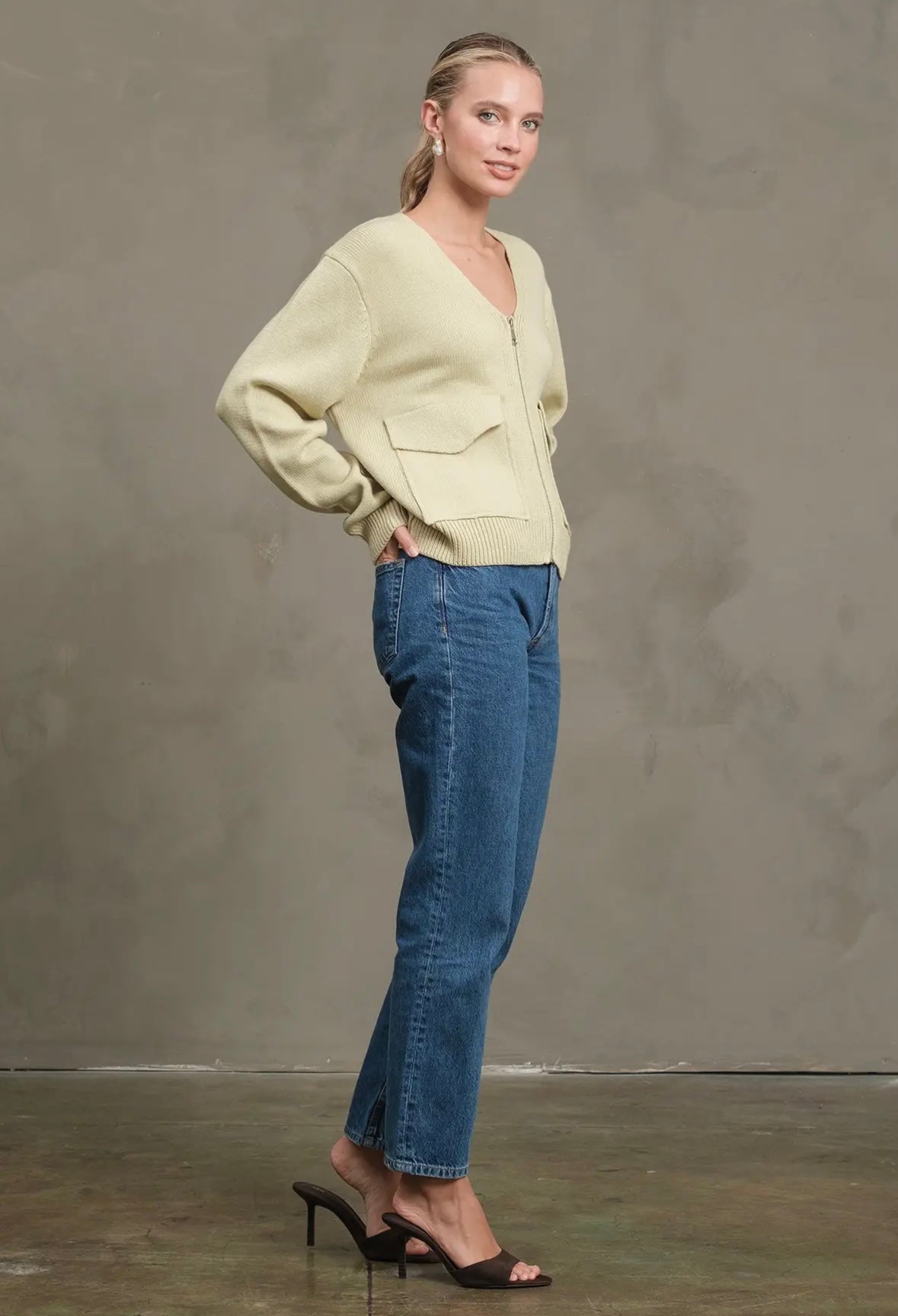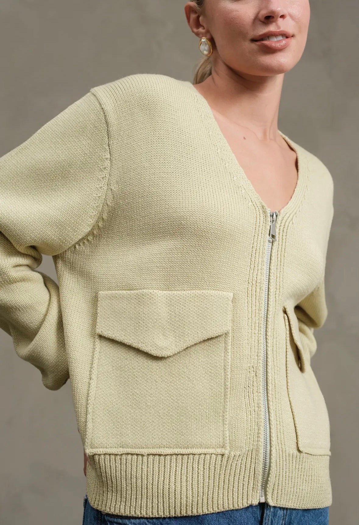 super cute, bomber style jacket/cardi in a cool pistachio green, front snap pockets