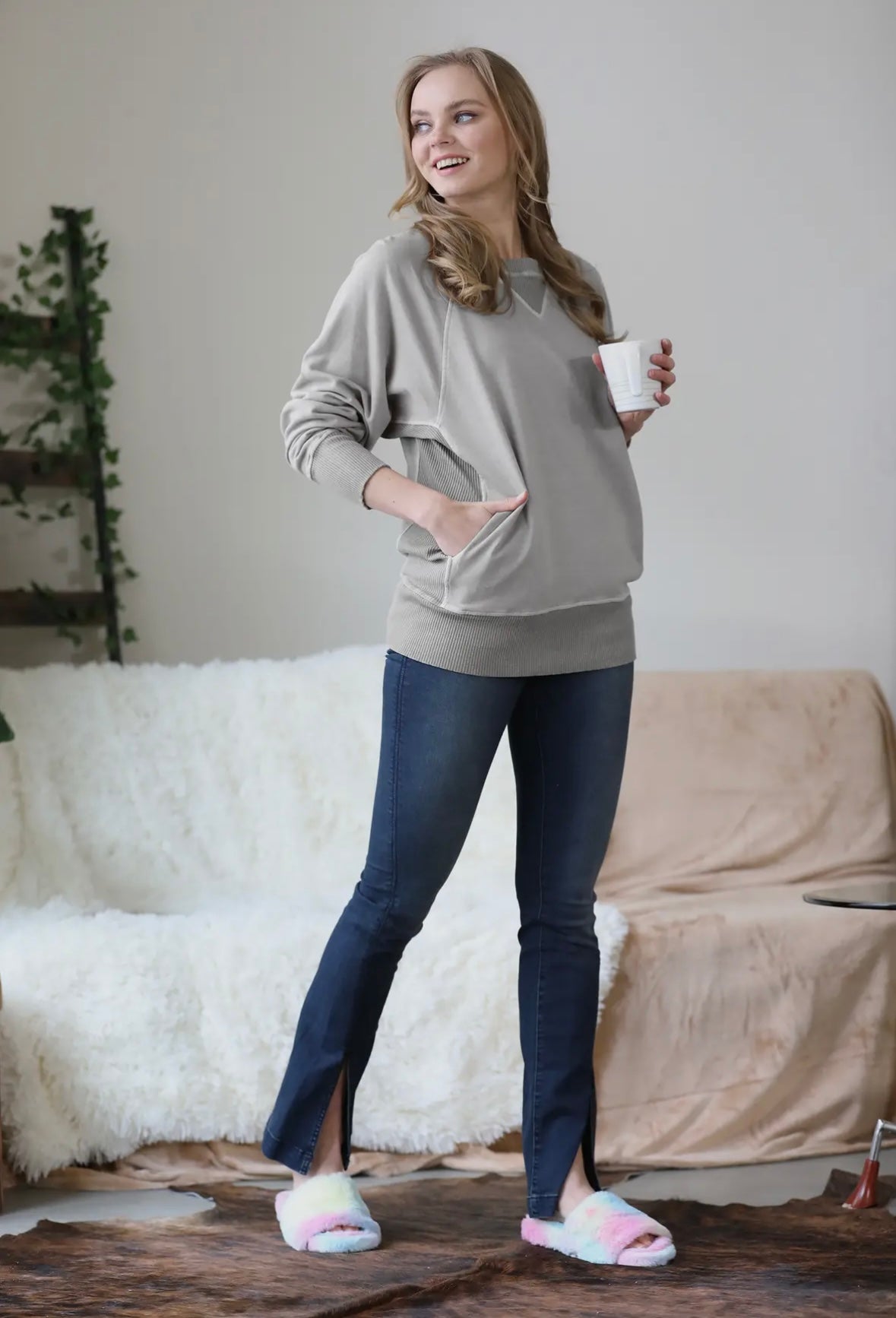 soft pullover crew neck sweatshirt with pockets, rib trim, cozy and polished