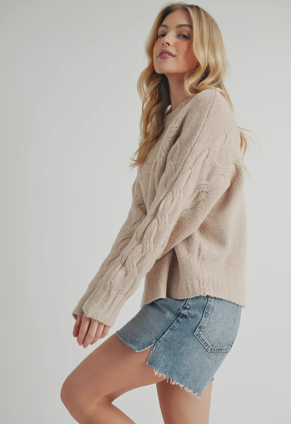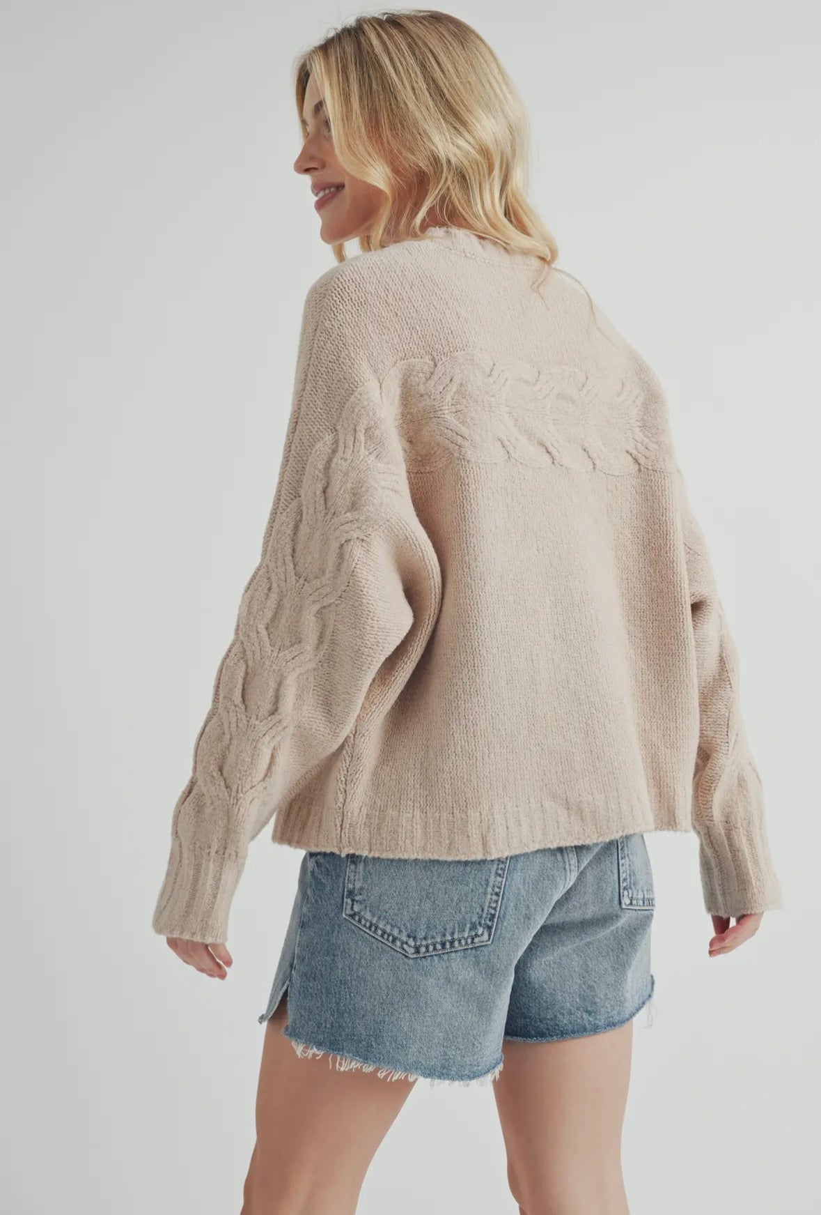 creamy and lovely, exaggerated cable across top and sleeves, washable